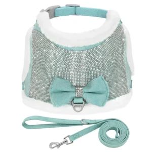 Bling Rhinestone Dog Harness Leash Set Cute Bowknot Cat Puppy Vest Harness Warm Fur Padded Pet Vests With Walking Rope For Dogs
